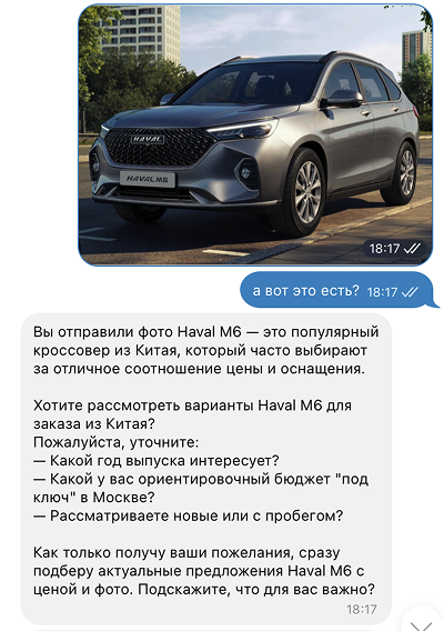 Сам ведёт клиента с нуля: отвечает, убеждает, отрабатывает возражения, дожимает до оплаты. Работает по скрипту — как опытный продавец.