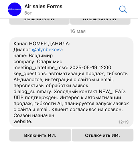 AI-менеджер от AiR Sales берёт на себя всю рутину: отвечает на вопросы, обрабатывает голос и фото, отправляет нужные материалы, ставит задачи и доводит клиента до действия — без задержек и человеческого фактора.