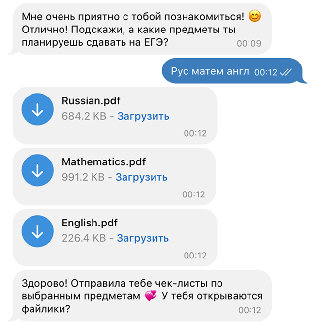 Запускает касания с «спящими» лидами, возвращает внимание, доводит до ключевого этапа воронки или даже до оплаты — без участия менеджера.